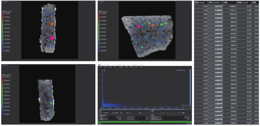 图 10 青铜样品内部孔洞分析 Figure 10. Analysis of internal holes in a tin bronze sample |